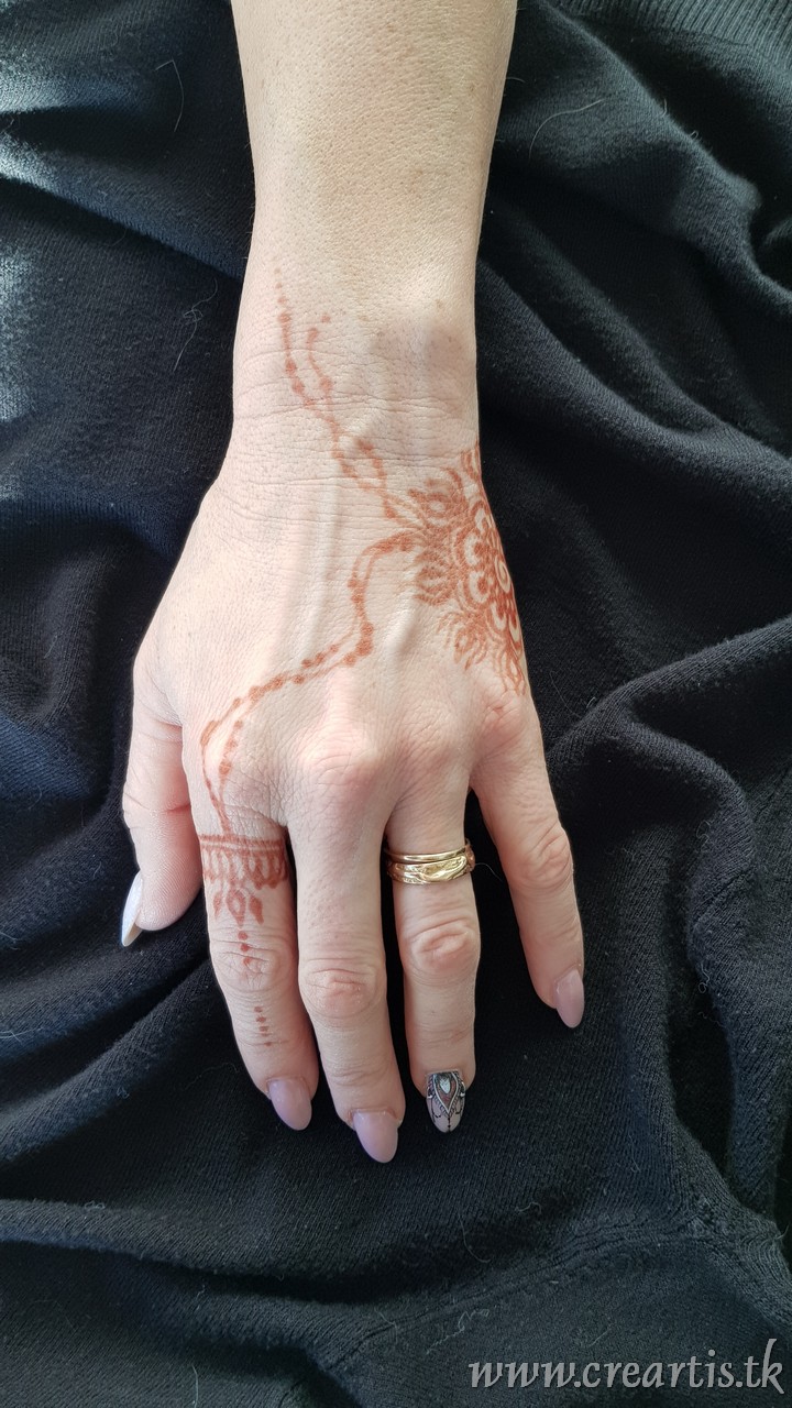 Le henné s'applique essentiellement sur les mains et les pieds, il ne marque presque pas sur le corps.