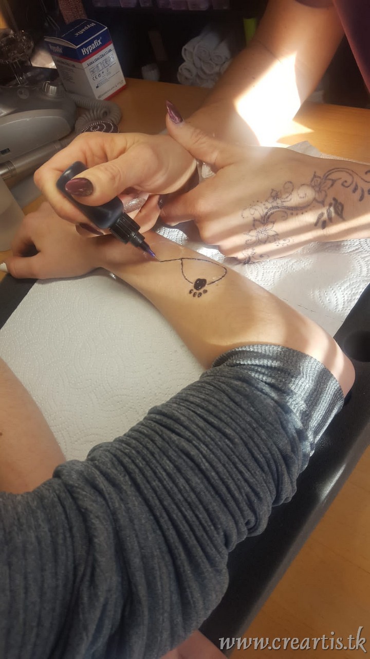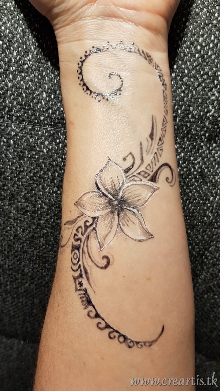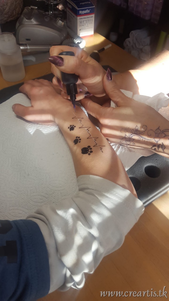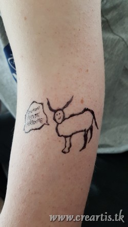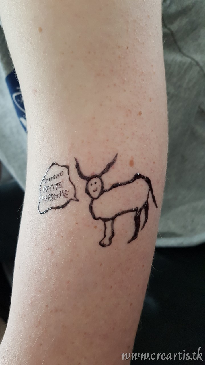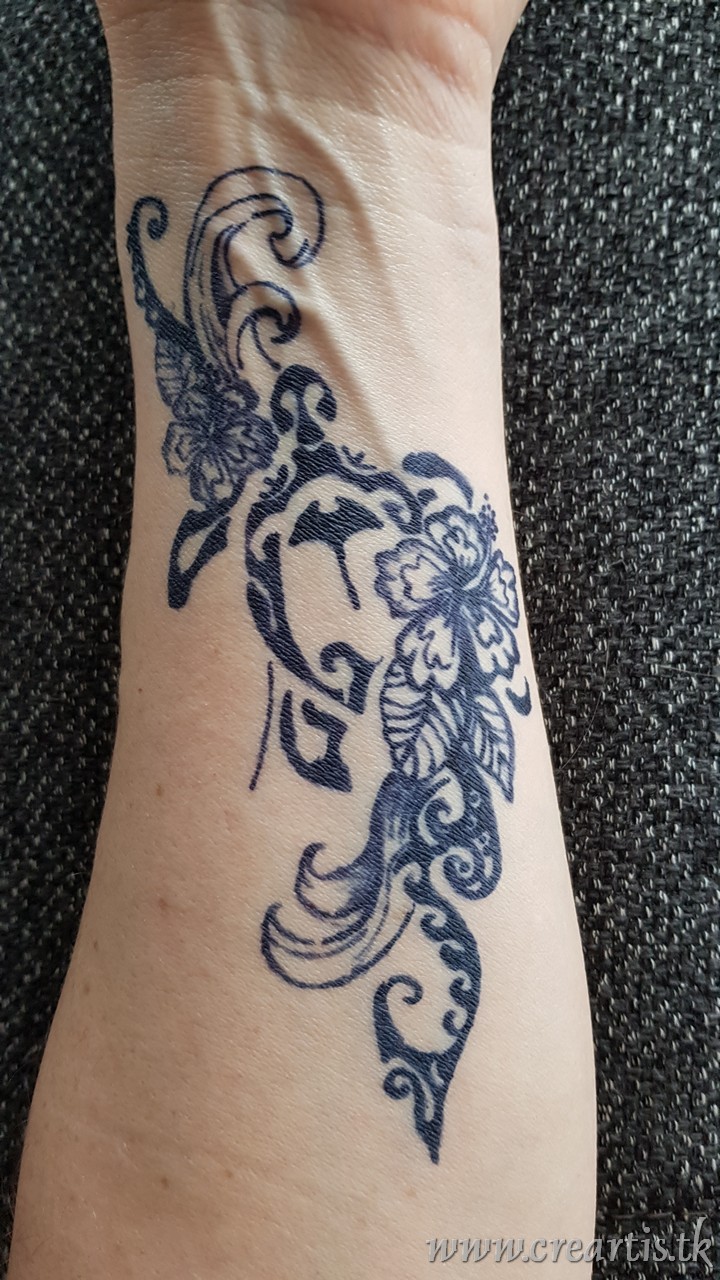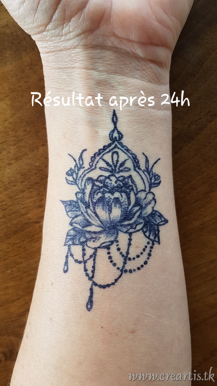 Au début, le tatouage sera presque invisible, puis il apparaîtra gentiment au bout de 24h environ sur les mains et 48h sur le reste du corps en passant par de drôles de couleurs (gris, vert bleu...).
